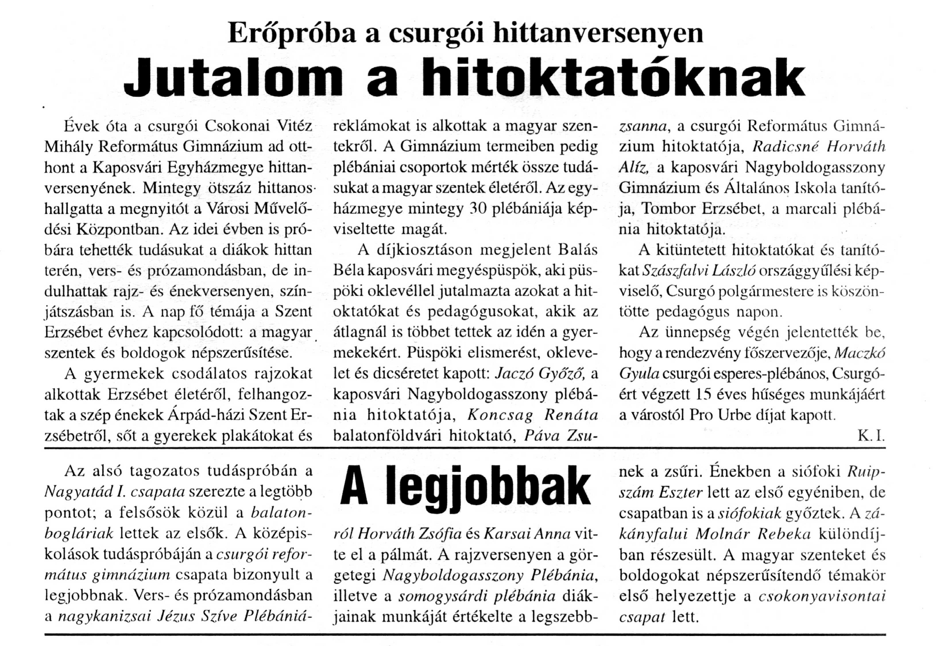 Részlet a SPIRITUSZ-ból, a Kaposvári Egyházmegye 2007 Júniusi számából.